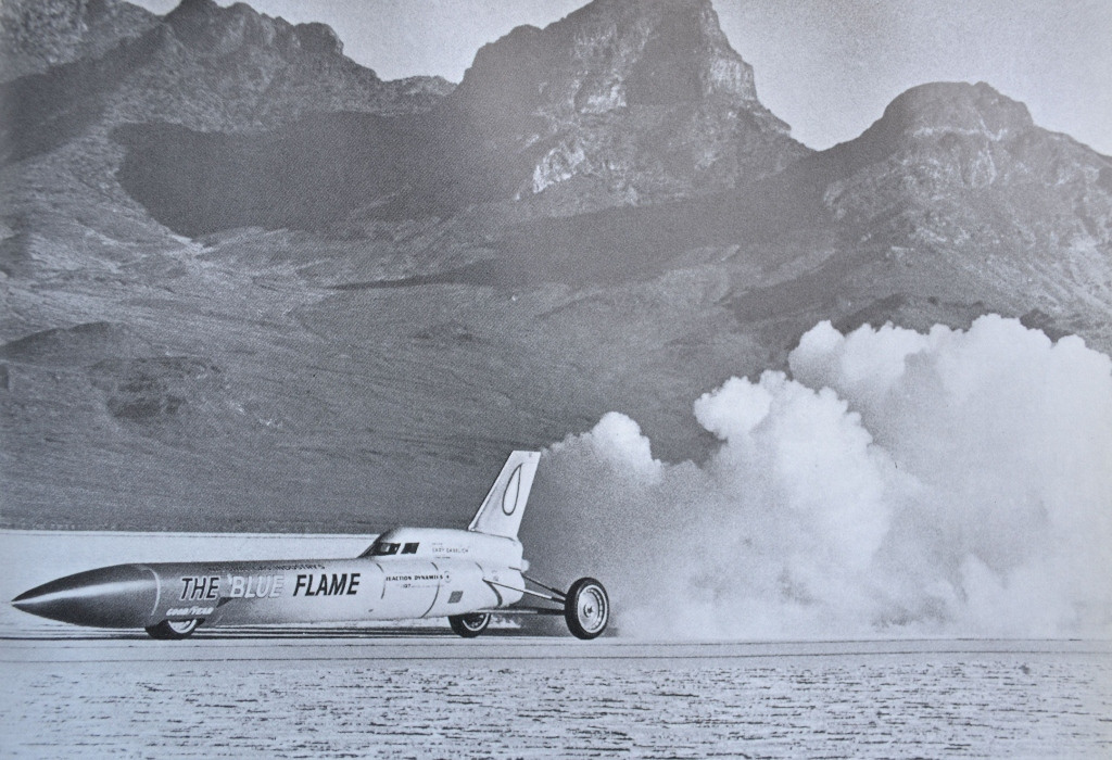 Spre începtului anilor ’70, competiţia pentru recordul mondial de viteză devenea din ce în ce mai explozivă, iar piloţii căutau soluţii tehnice cât mai avansate pentru a-şi trece numele printre viteziştii de legendă. Unul dintre aceştia era Gary Gabelich, un pretendent ambiţios care se baza pe The Blue Flame – o torpilă uriaşă pe trei roţi, calibrată şi testată pe platourile de sare de la Bonneville, în ziua de 4 noiembrie 1970. Blue Flame era descris de producători ca primul dragster-rachetă alimentat cu gaz natural lichefiat şi peroxid de hidrogen, sau banala apă oxigenată. Toată ingineria din „burta” rachetei a făcut ca preţul acesteia să se ridice la 500.000 de dolari, însă suma a fost una pe măsură: noul record fusese stabilit cu viteza de 1001,1 kilometri pe oră.