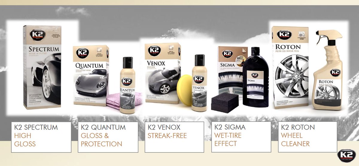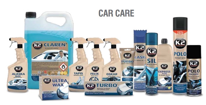 Specialiştii K2 au dezvoltat şi o serie de soluţii care îmbunătăţesc funcţiile motorului sporindu-i fiabilitatea, dar şi produse de polishing şi ceruire care acoperă micile imperfecţiuni. Acum poți achiziționa soluții pentru curatarea geamurilor, a ușilor, a jantelor si a anvelopelor dedicate. Varietati de ceara care sa asigure realizare unor lucrari de calitate, sprayuri pentru luciu, produse pentru curatare ecrane.