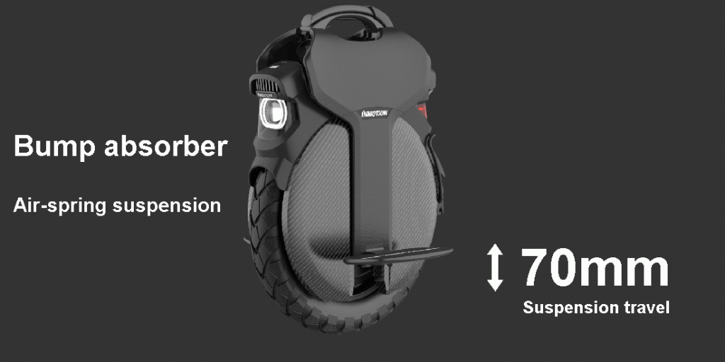 V11 promite sa ofere o plimbare lina si confortabila datorita suspensiilor pe aer care diminueaza impactul cu o groapa sau o crapatura din asfalt, oferind mai multa siguranta in timpul plimbarii si o imbunatatire considerabila a experientei avute pe un monociclu. De asemenea, suspensiile de aer se dovedesc utile persoanelor care au probleme cu genunchii sau cu spatele deoarece implica mai putin efort.