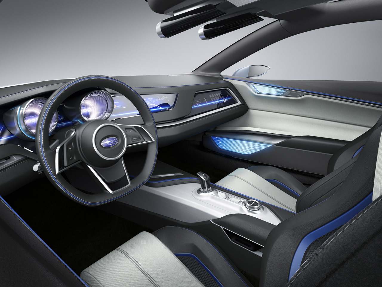 Conceptul Subaru Viziv este destul de compact, având o lungime de 4,32 metri, în timp ce ampatamentul este de 2,64 metri, generos pentru gabaritul maşinii. Interiorul este high-tech şi abundă în diverse displayuri plasate pe bord, iar ambianţa este plăcut influenţată de iluminarea albastră.