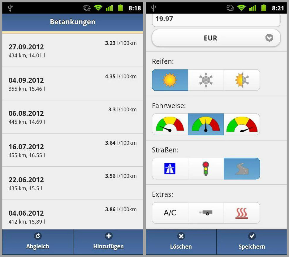 Spritmonitor.de sau MyCars (Android)
