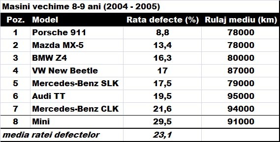 Clasamentul modelelor cu vechime între 10 şi 11 ani, pe ultima pagină