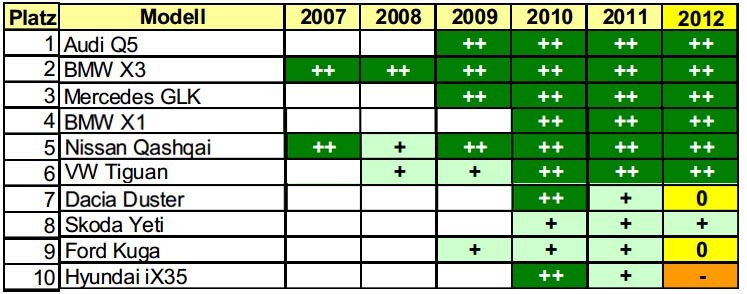 ADAC Pannenstatistik 2013 – SUV / Crossover