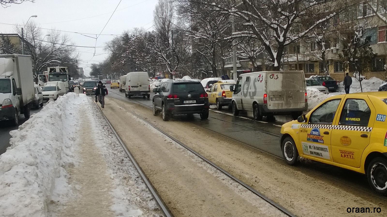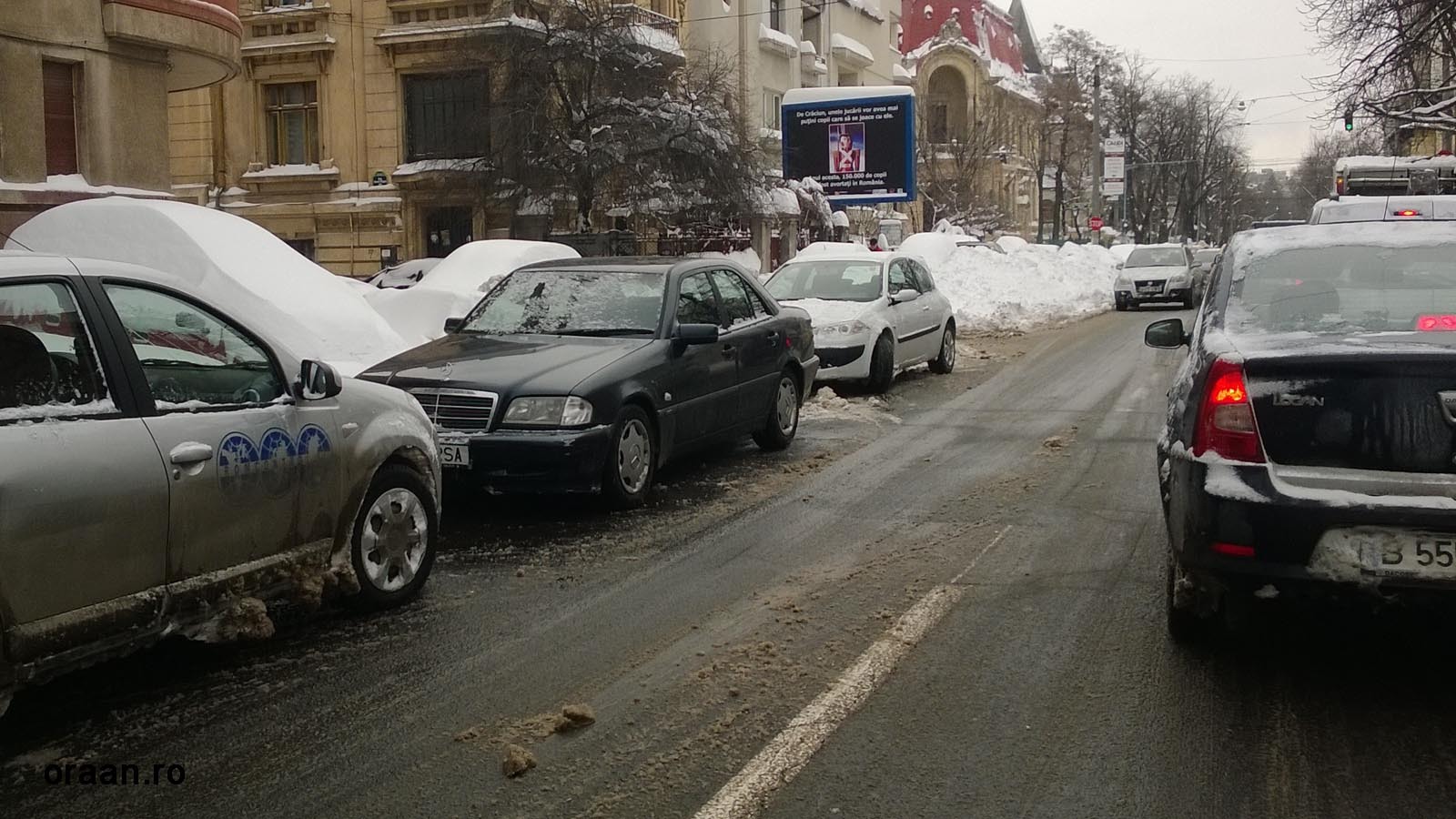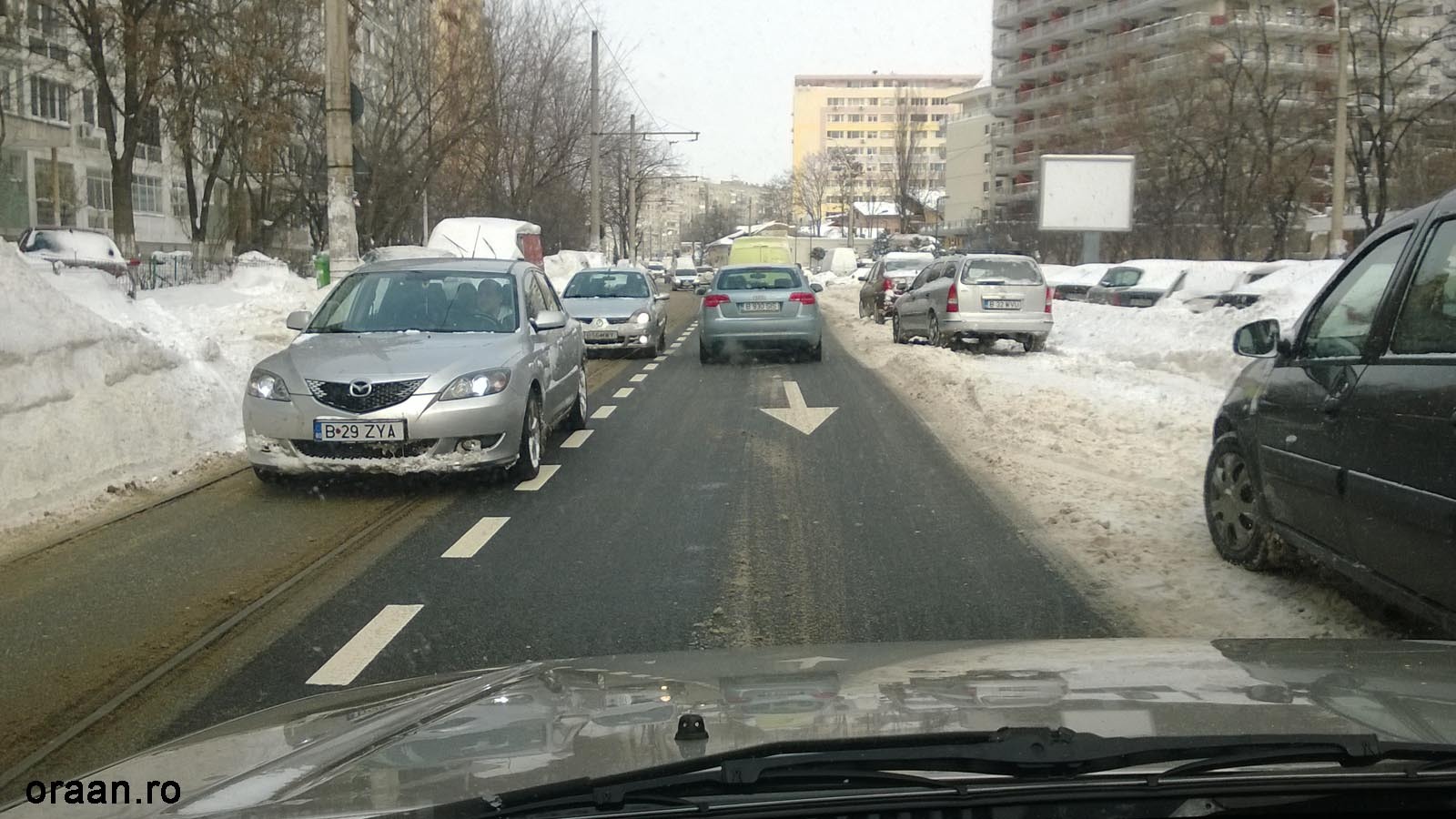 Iarna e anotimpul în care poţi parca pe o bandă-ntreagă. Că doar mai e loc şi pe şina de tramvai