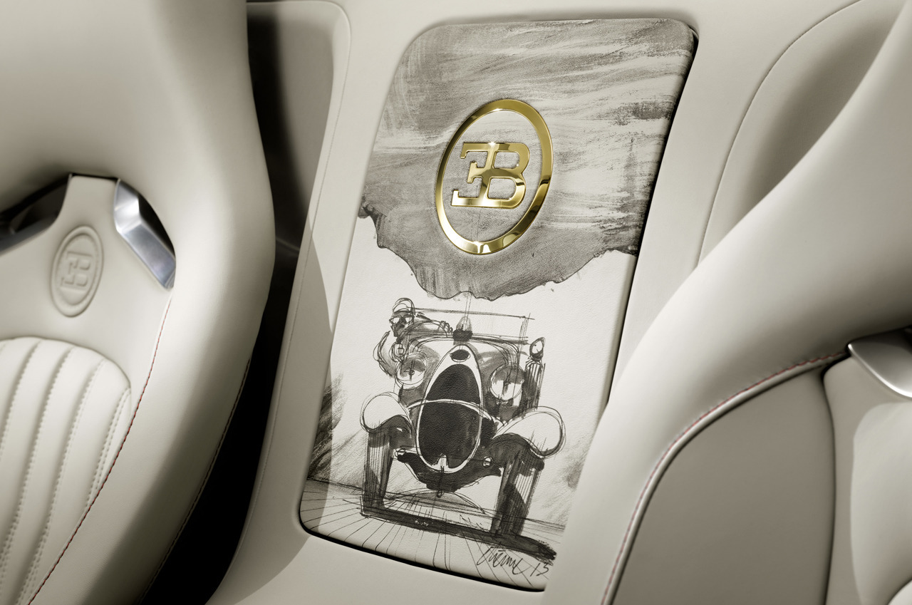 Garros şi al său Type 18, într-o redare unicat pe tapiţeria din piele din interiorul lui Bugatti Black Bess