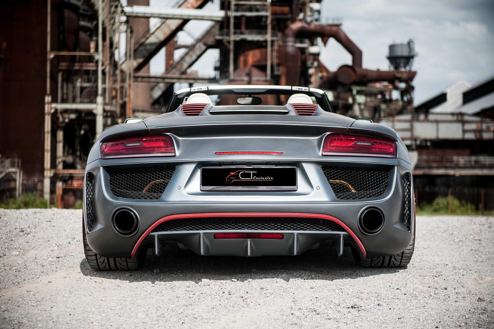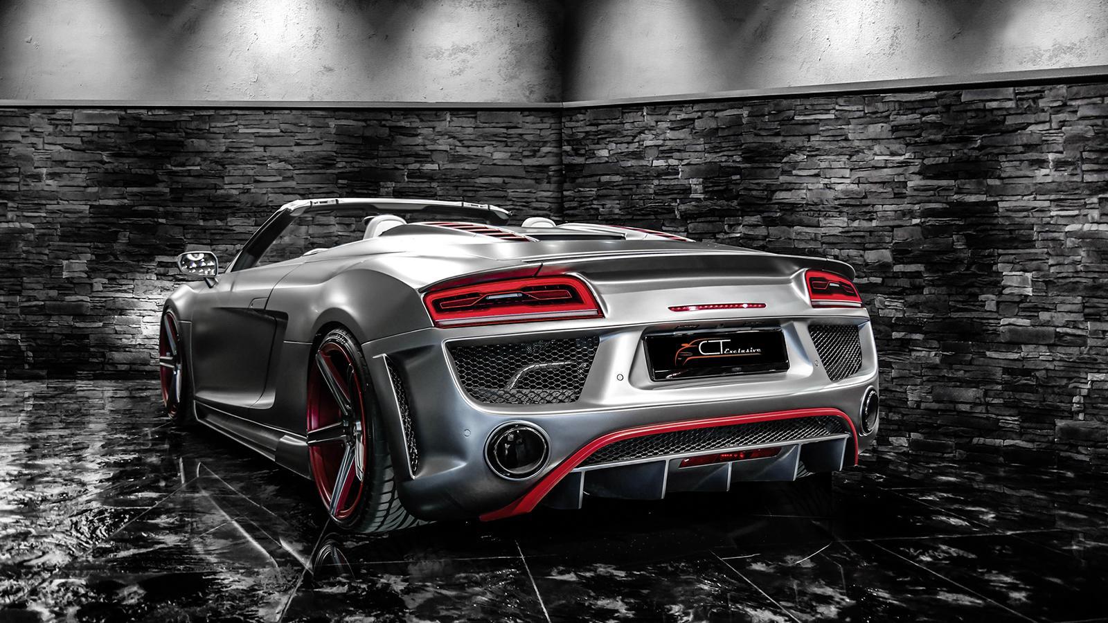 Fratele său R8 V10 a devenit şi el un preferat al nostru, după ce l-am testat pe circuitul din Misano. Dar asta e altă poveste. Dacă ne îndreptăm atenţia spre creaţia celor de la CT Exclusive, trebuie menţionat de la pun început un aspect important: kitul de tuning exterior costă nici mai mult nici mai puţin decât 8.900 de euro.
