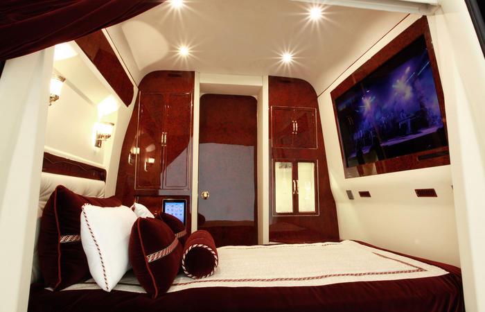 Aici, Lexani a montat fotolii îmbrăcate în piele, un pat dublu, un minibar, două televizoare cu diagonala de 19 inci, un televizor cu diagonala de 46 de inci, un sistem audio Alpine cu puterea de 1.000 de Waţi şi un PlayStation 3.