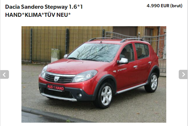 În acest articol îți prezentăm două modele Dacia Sandero Stepway pe care le poți cumpăra cu doar 5.000 de euro de pe site-ul mobile.de.