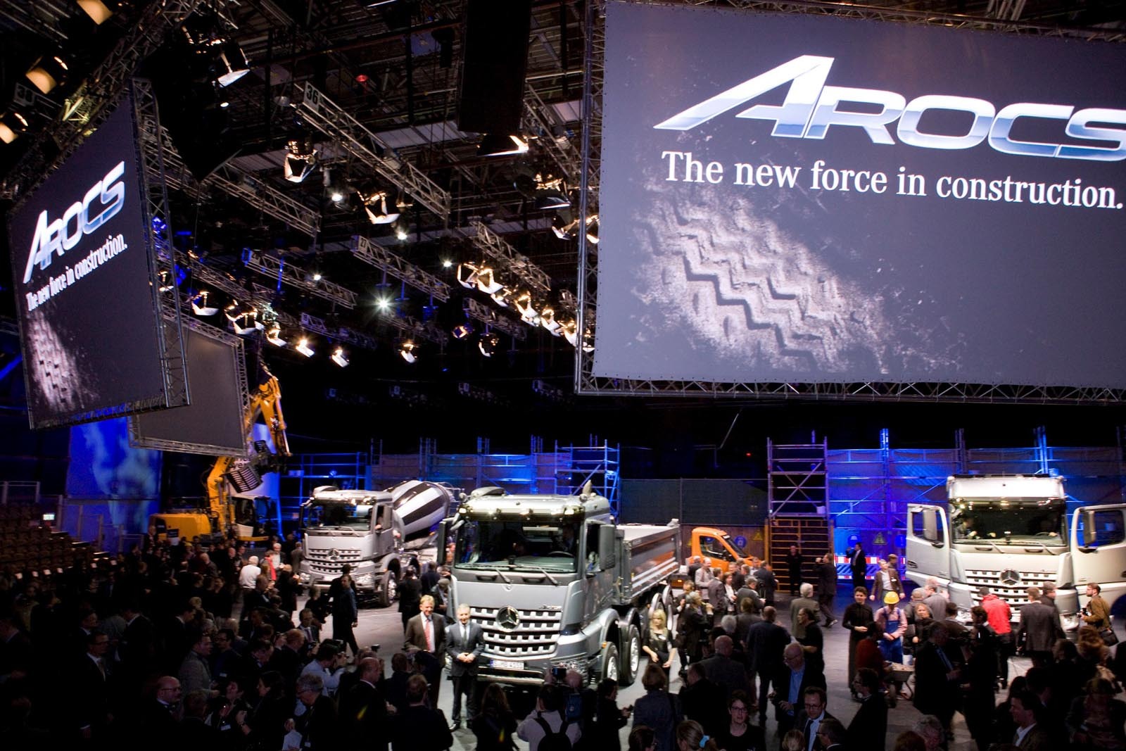 Modelul Arocs, configurat special pentru transport în domeniul construcţiilor, ilustrează cât de puternic, robust şi eficient arată un vehicul pentru construcţii în 2013. Astfel, continuând povestea de succes Mercedes-Benz, ce a început acum mai bine de 110 ani în domeniul construcţiei de autovehicule, Arocs prezintă meritele acestei descendenţe prin impunerea, în mod particular, a stilului camioanelor de tonaj mare. Având un cuplu ridicat, motoare care se bazează pe tehnologia BlueEfficiency, cu o gamă de puteri cuprinsă între 175 kW (238 hp) şi 460 kW (625 hp), şasiu robust, design îmbunătăţit al suspensiei şi şasiului, Arocs se remarcă printr-o capacitate excepţională de transport de încărcături grele.