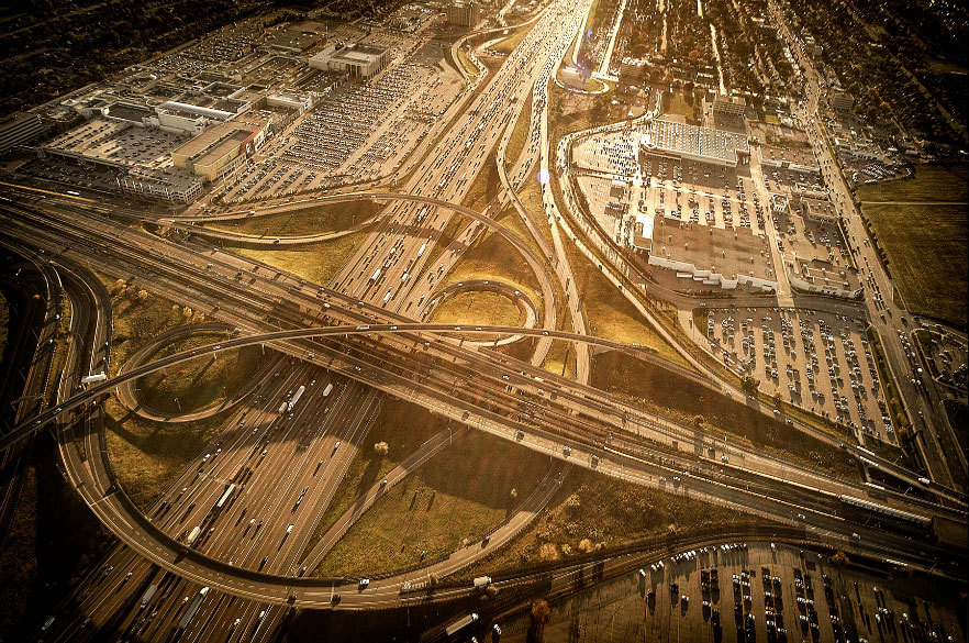 Iar canadianul Peter Andrew a făcut exact asta. S-a urcat într-un avion şi a fotografiat cele mai interesante, complicate şi frumoase noduri rutiere de pe mapamond. Nişte intersecţii imense, pe care oameni le folosesc zi de zi pentru a ajunge de la punctul A la punctul B.