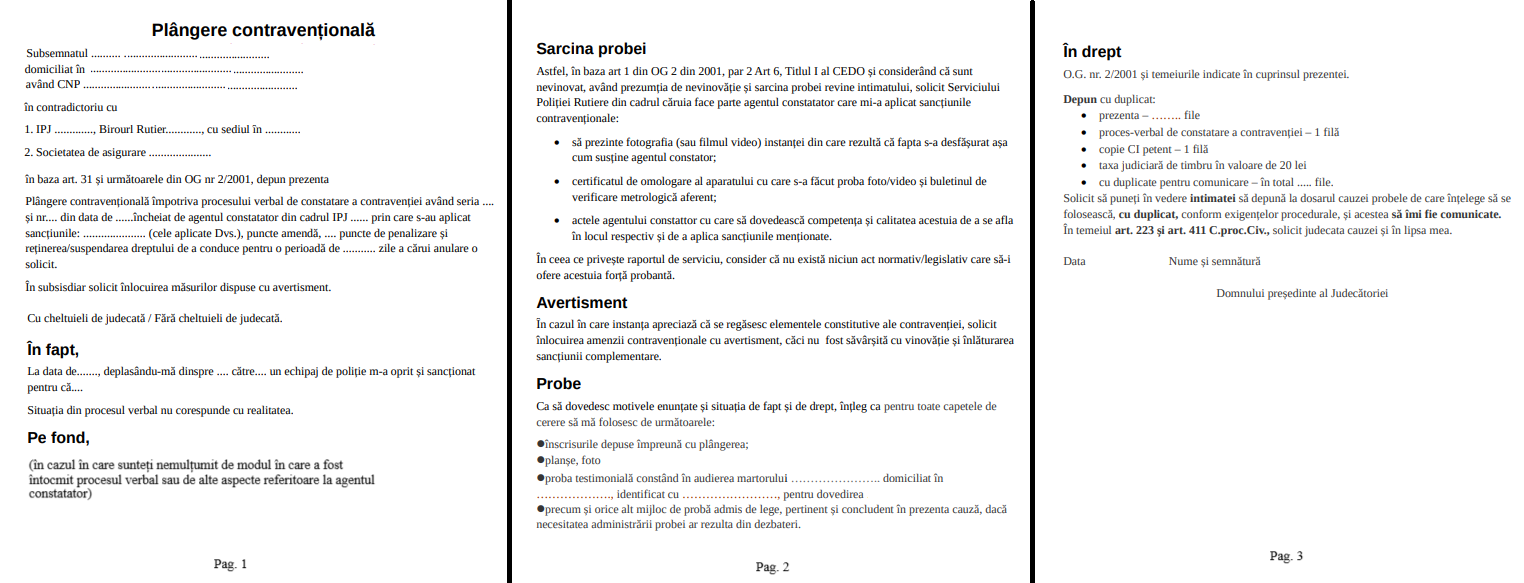 Mai jos regăsiți un model de cerere de anulare a procesului verbal.