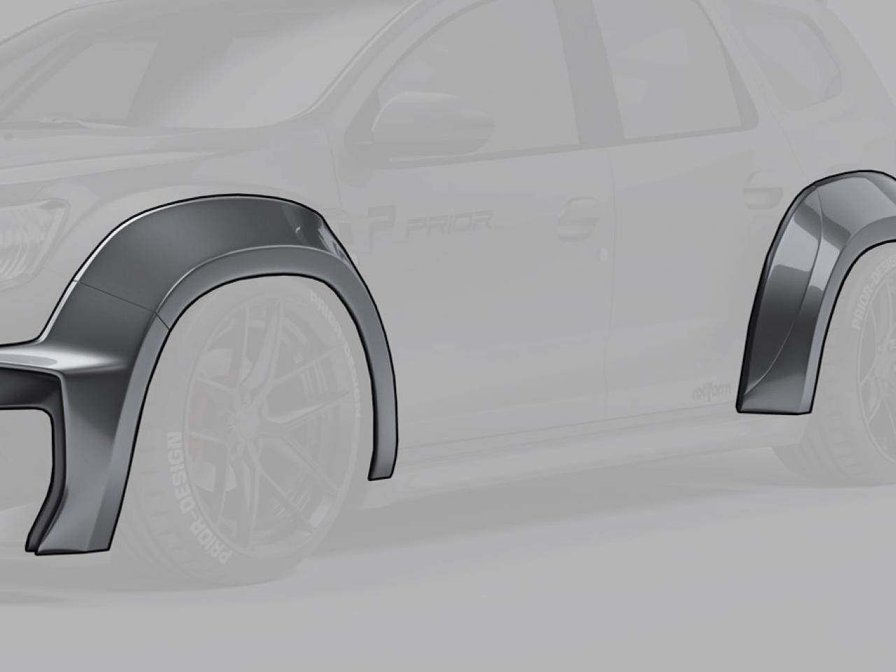 Pachetul de elemente oferit de Prior Design este realizat dintr-un amestec din fibră de sticlă și Dura-Flex, ușor de vopsit și ieftin de fabricat. Modificările sunt compatibile pentru orice Duster produs începând cu 2018, inclusiv facelift-ul recent, deoarece panourile caroseriei au rămas neschimbate.