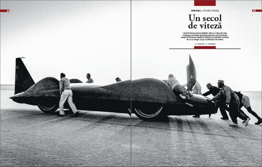 Porţia de istorie auto sărbătoreşte 100 de ani de viteză, obsesii pentru doborârea recordurilor şi temerarii pentru care drogul vitezei a însemnat o împingere permanentă a limitelor personale dar şi a maşinăriilor infernale pe care le pilotau. Totul, în materialul special „Un secol de viteză”, inclus în numărul de septembrie al revistei ProMotor.