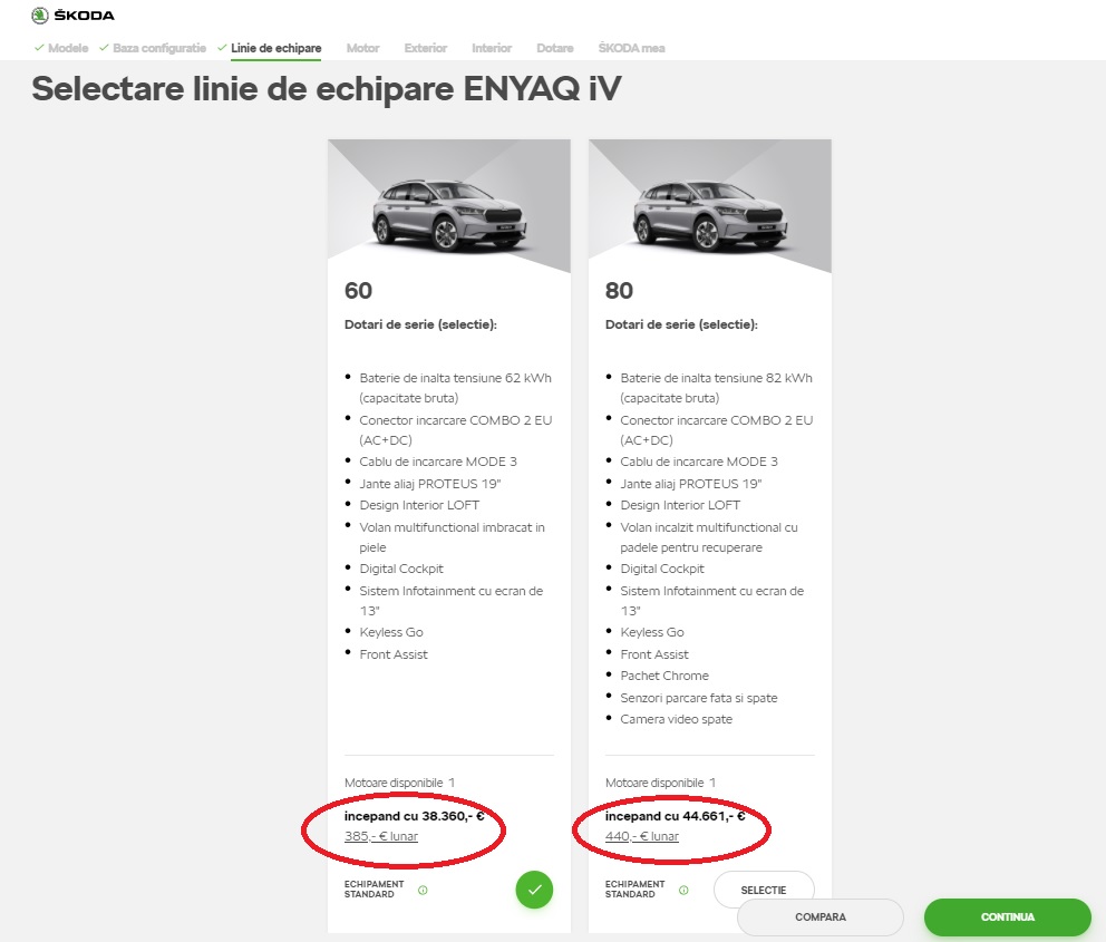 La începutul lunii septembrie 2020 Skoda a prezentat modelul electric ENYAQ IV. De curând, el a ajuns și în configuratorul din România. La noi în țară sunt disponibile două versiuni ENYAQ iV 60 și ENYAQ iV 80.