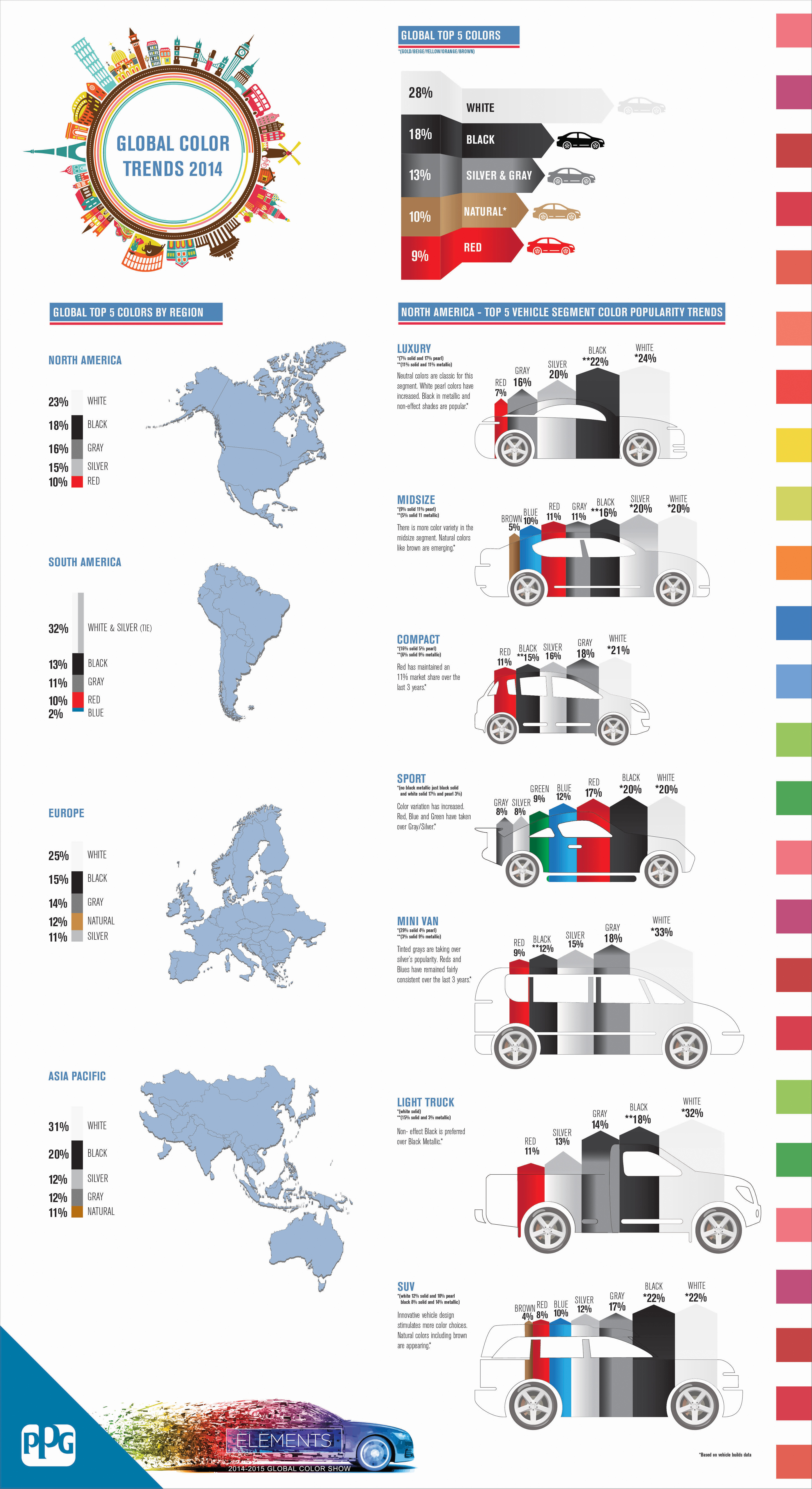 Într-un studiu mondial realizat de PPG Industries (un mare producător de vopsele) a reieşit că cea mai comandată culoare auto a anului 2014 a fost alb, urmată de non-culoarea lui Henry Ford. Griul – şi aceasta, la rândul ei, o non-culoare, este pe locul trei. De fapt, îţi lăsăm infograficul de mai jos pentru explicaţii detaliate.
