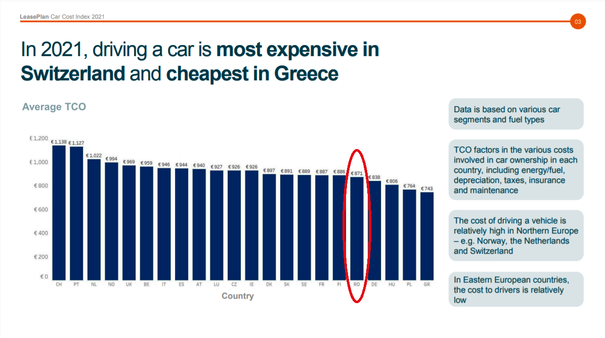 Aceasta este concluzia raportului anual dat publicității de către compania de leasing LeasePlan în ceea ce privește nivelul taxelor, impozitelor și restul costurilor asociate unei mașini sunt mai mari în 22 de țări europene.