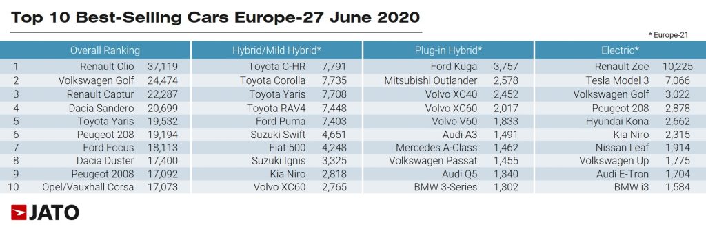 JATO iunie: Care sunt cele mai căutate mașini în Europa?