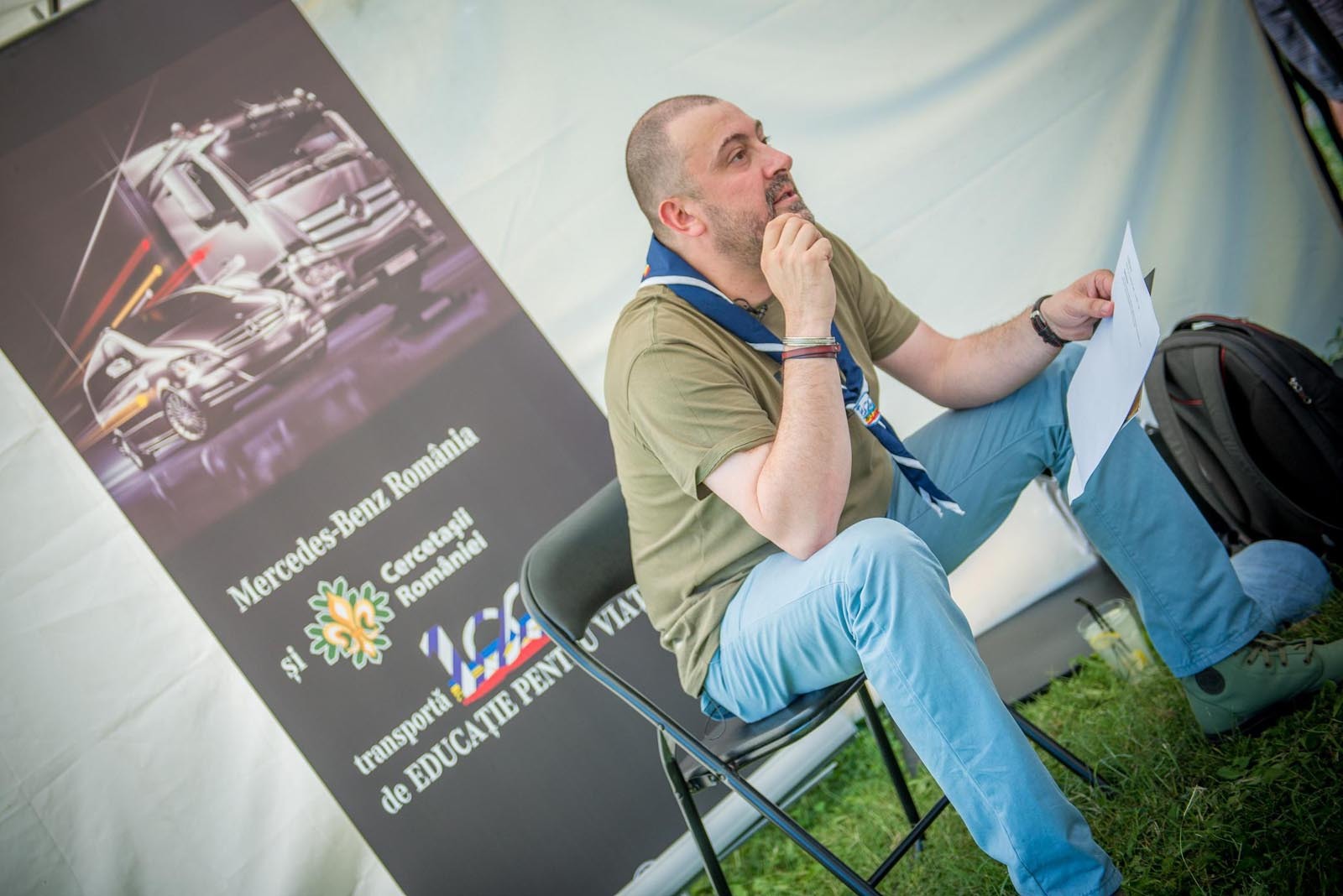 Sâmbătă, 3 august, Mercedes-Benz România a organizat un workshop exclusiv susţinut de Cătălin Ştefănescu, realizatorul emisiunii „Garantat 100%” de pe TVR 1. Workshop-ul, ce a avut drept subiect „Cultura e cool”, a reunit Cercetaşi de toate vârstele pe peluza din faţa Palatului Mogoşoaia. Printr-un discurs plin de exemple şi poveşti de viaţă, Cătălin Ştefănescu le-a prezentat Cercetaşilor perspectiva sa asupra culturii şi valorilor contemporane. Aceştia au intervenit în discuţie, curioşi să afle opiniile lui Cătălin Ştefănescu referitoare la subiectele de interes pentru ei.
