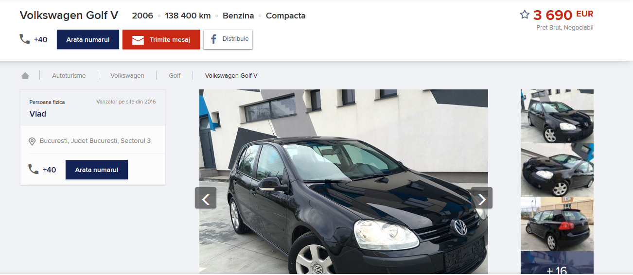 Un cititor ProMotor ne-a trimit o situaţie cu care s-a confruntat când a încercat să-şi cumpere o maşină la mâna a doua. Problema e binecunoscută: km daţi înapoi. El a găsit un anunţ cu un Golf V în care observă o mare neconcordanţă. În datele tehnice din anunţ scrie 138 400 de km, însă pe fişa de service făcută în 2016 scrie clar că, la acel moment, maşina avea 170 000 de km. În acest mod, au dispărut mai bine de 31.600, plus ce s-a mai circulat cu ea din momentul reviziei până în prezent. Potenţialul client îl contactează pe proprietar şi îi atrage atenţia însă acesta din urmă îi răspune în cel mai josnic mod posibil.