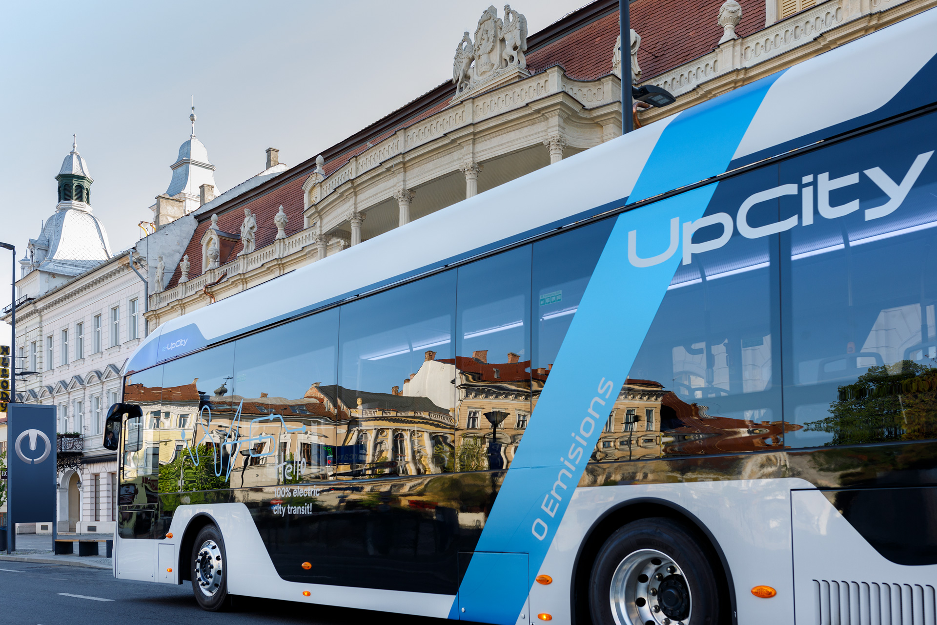 Primul prototip are în total 83 de locuri și o lungime de 12,18 m. În varianta de configurație specială, omologarea îi permite 95 de locuri. Autonomia sa este de minim 200 km dar poate fi extinsă până la 360 de kilometri. Motorul electric al autobuzului e-UpCity este un motor sincron cu magnet permanent dezvoltat de DANA Prestolite.