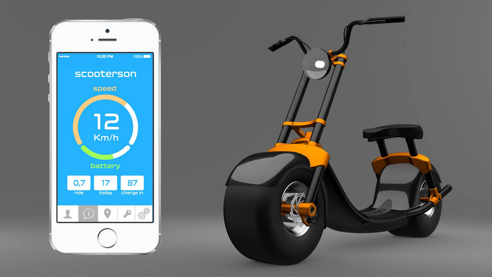 Scooterson e numele unui scuter electric inteligent dezvoltat de o echipă din Arad, după cum scrie start-up.ro. Scuterul se conectează la smartphone sau smartwatch şi nu are nevoie de cheie de contact sau mâner de acceleraţie, fiindcă ştie când te apropii de el (dacă ai funcţia Bluetooth activată), iar viteza e calculată automat în funcţie de cât de tare împingi cu piciorul atunci când pleci de pe loc (aşa cum ai face cu o trotinetă clasică).