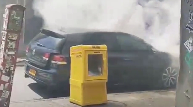 Steinfeld a sunat repede la 911, dar până la sosirea pompierilor o mare parte din maşină era cuprinsă de flacări.