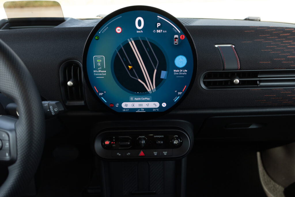 Interiorul reprezintă adevărata schimbare. Cred că aici Mini va da lovitura de grație pentru potențialii clienți. Mai ales prin acel ecran central, cu tehnologie OLED, care arată ca o bomboană colorată. Dacă reușești să te obișnuiești cu interfața, poți să îi mai ierți din neajunsuri.