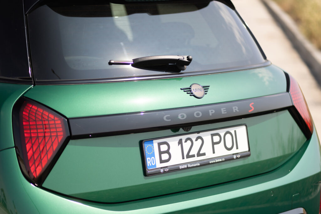 Configurația testată de noi a fost una îndrăzneață. În contrast cu caroseria vopsită în British Racing Green, dungile și plafonul roșii oferă o imagine distinctivă. Sunt elemente specifice Mini și, judecând după numărul de priviri pe care mașina le-a atras în cele câteva zile în care am derulat testul, conferă mașinii un anume „wow factor”.