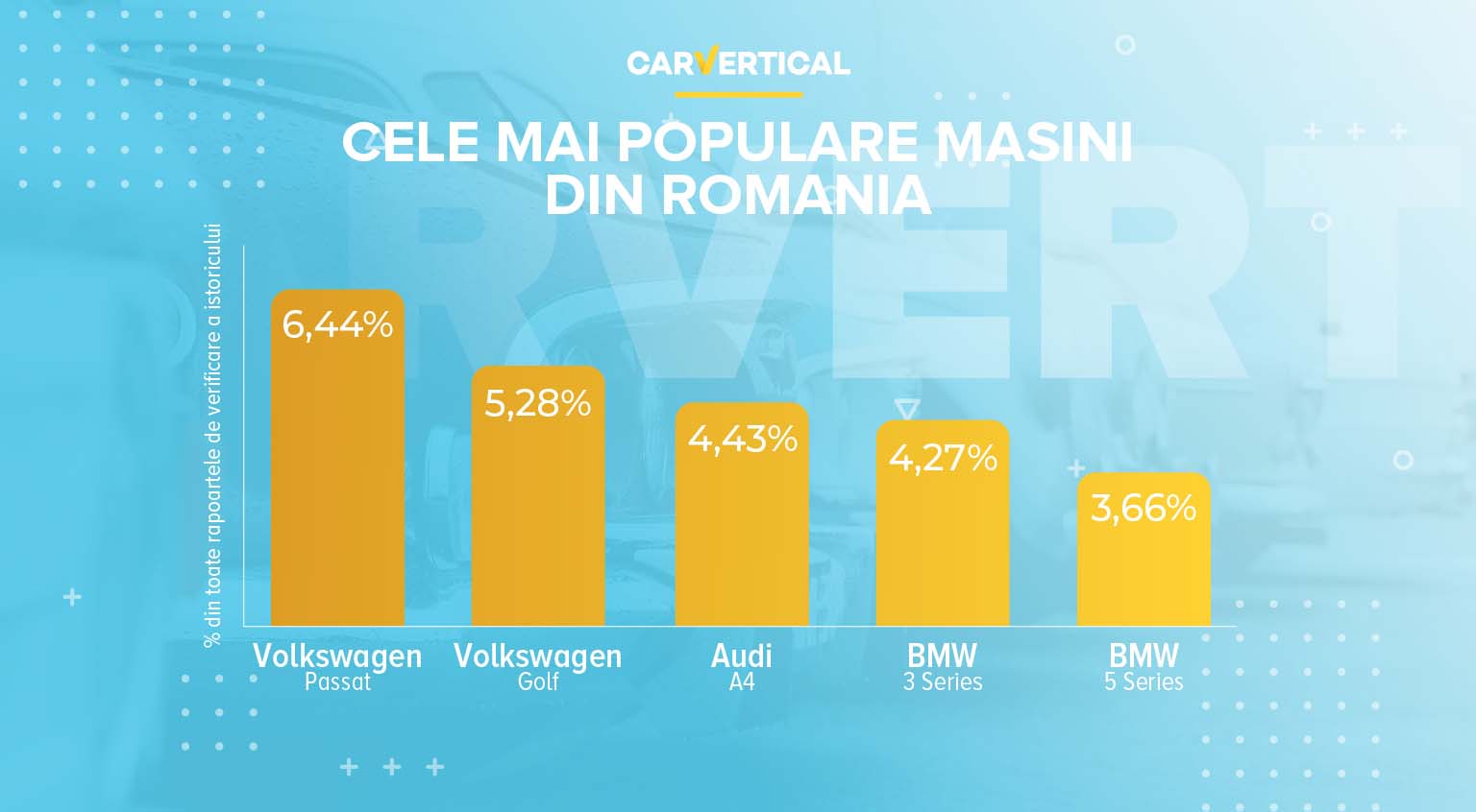 Pe baza rapoartelor de verificări, cei de la CarVertical au întocmit un raport cu cele mai populare mașini verificate în cursul anului 2020 pe platforma lor. În cadrul acestei analize au fost luate în calcul peste 500.000 de rapoarte unice efectuate pe site în perioada Ianuarie 2020 – Decembrie 2020.
