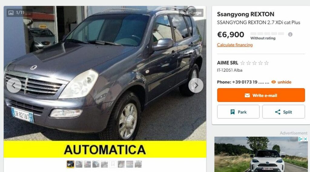 Acest model produs în Coreea de Sud are sub capotă un motor diesel de 2,7 litri cu o putere de 165 CP. SUV-ul dotat cu o cutie automată are la bord 159.300 kilometri și vânzătorul susține că nu a fost implicat în accidente. Modelul a fost înmatriculat prima dată în anul 2004 și are norma de poluare Euro 3.