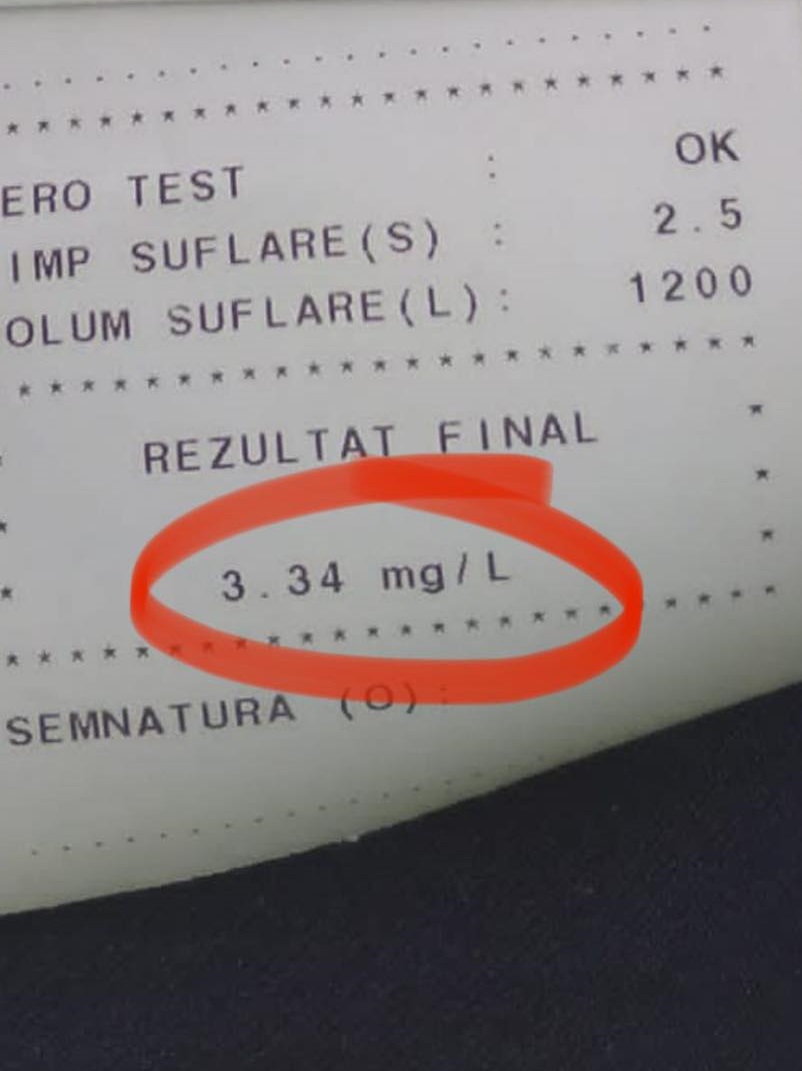 Potrivit Poliției, bărbatul a fost prins cu o alcoolemie de 3,34 la mie, pe A1, la kilometru 73, sensul spre Pitești. Pe pagina de Facebook, Poliția a prezentat rezultatul testului.
