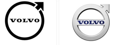 Noul logo diferă, aparent, foarte puțin de cel anterior. Ca și Volkswagen, care a adoptat un logo bidimensional, Volvo renunță la logo-ul glossy în favoarea unui plat, desenat cu negru. Cercul este trasat mai subțire, iar săgeata nu mai este conectată la acesta. Fondul albastru de sub denumirea mărcii a dispărut, de asemenea, iar acestea sunt scrise acum negru pe fond alb.