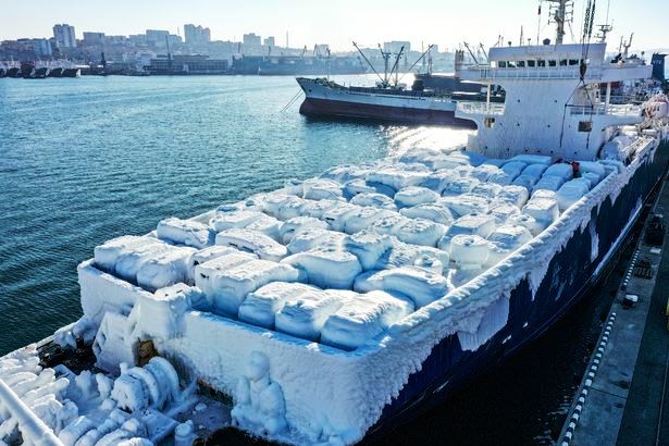 Zeci de mașini au înghețat bocnă pe o navă ajunsă în Vladivostok. Cum arată la interior? (cu video)