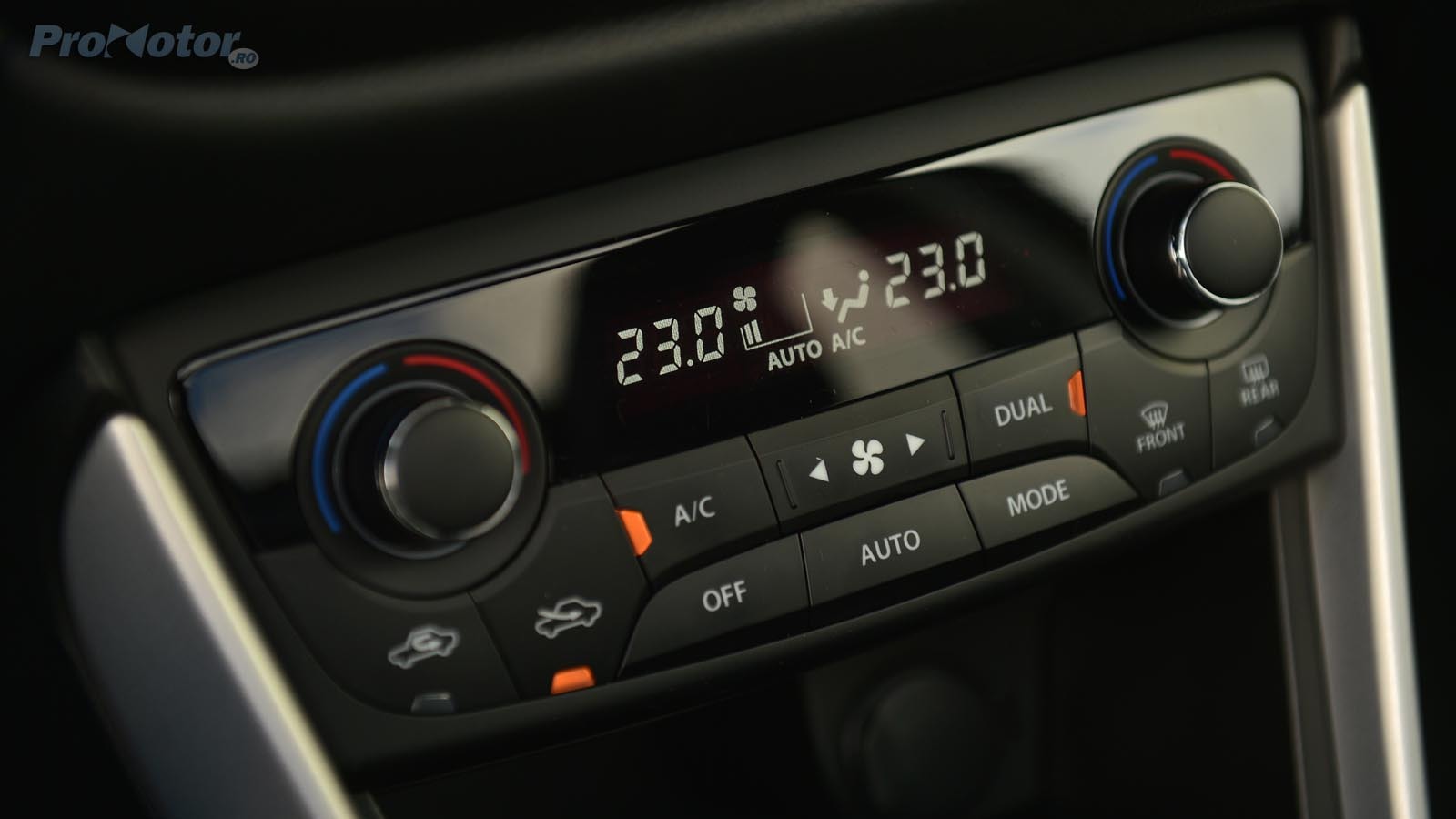 Maşina noastră de test era în echiparea superioară ”Elegance Top”, aşa încât frapa prin materialul cauciucat foarte plăcut din partea centrală a bordului, prin butoanele dintr-un plastic plăcut la atingere şi printr-o finisare generală corectă – eventual ornamentele din plastic având look de aluminiu pot fi criticate pentru feelingul la atingere, dar, per ansamblu, conferă bordului un aspect elegant.