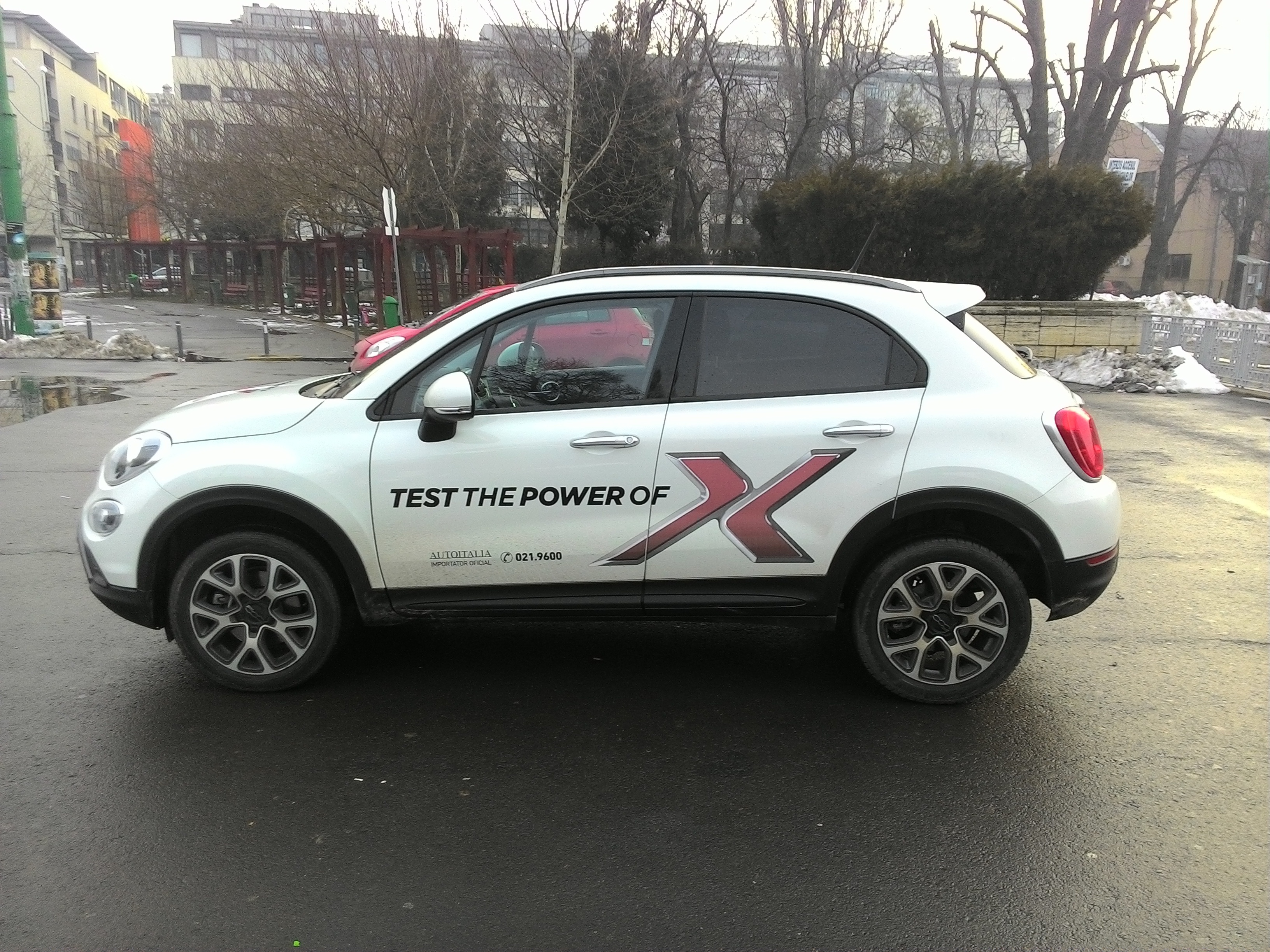 Pornesc cu Fiat 500x. Motorul testat e diesel, 2 litri şi 140 cai-putere. Transmisia automată în 9 trepte completează frumos sistemul, iar schimbarea treptelor e foarte lină. Asta dacă mergi în modul Auto. Există 3 opţiuni, prin sistemul Mood Selector: Auto, Sport şi Traction. De menţionat, 500X este primul din clasa lui cu transmisie automată în 9 trepte.