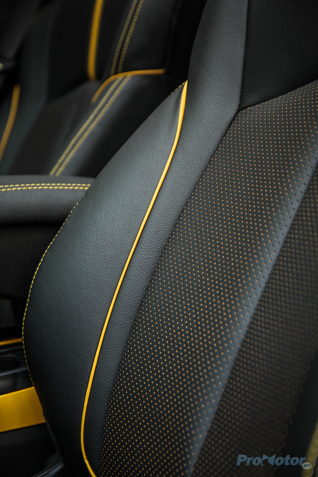 Scaunele sunt confortabile şi sunt profilate corect, iar spaţiile de depozitare sunt mai mult decât suficiente pentru o maşină care e cu doar 55 mm mai lungă decât o Dacia Sandero Stepway. Există două locuri pentru pahare pe canalul median (în spatele mânerului pentru frâna de mână), un spaţiu micuţ pentru telefonul mobil în faţa schimbătorului de viteze (care e acoperit cu un material aderent, deci nu o să îţi alunece telefonul nicăieri) şi locuri în uşile din faţă pentru tot felul de mărunţişuri.