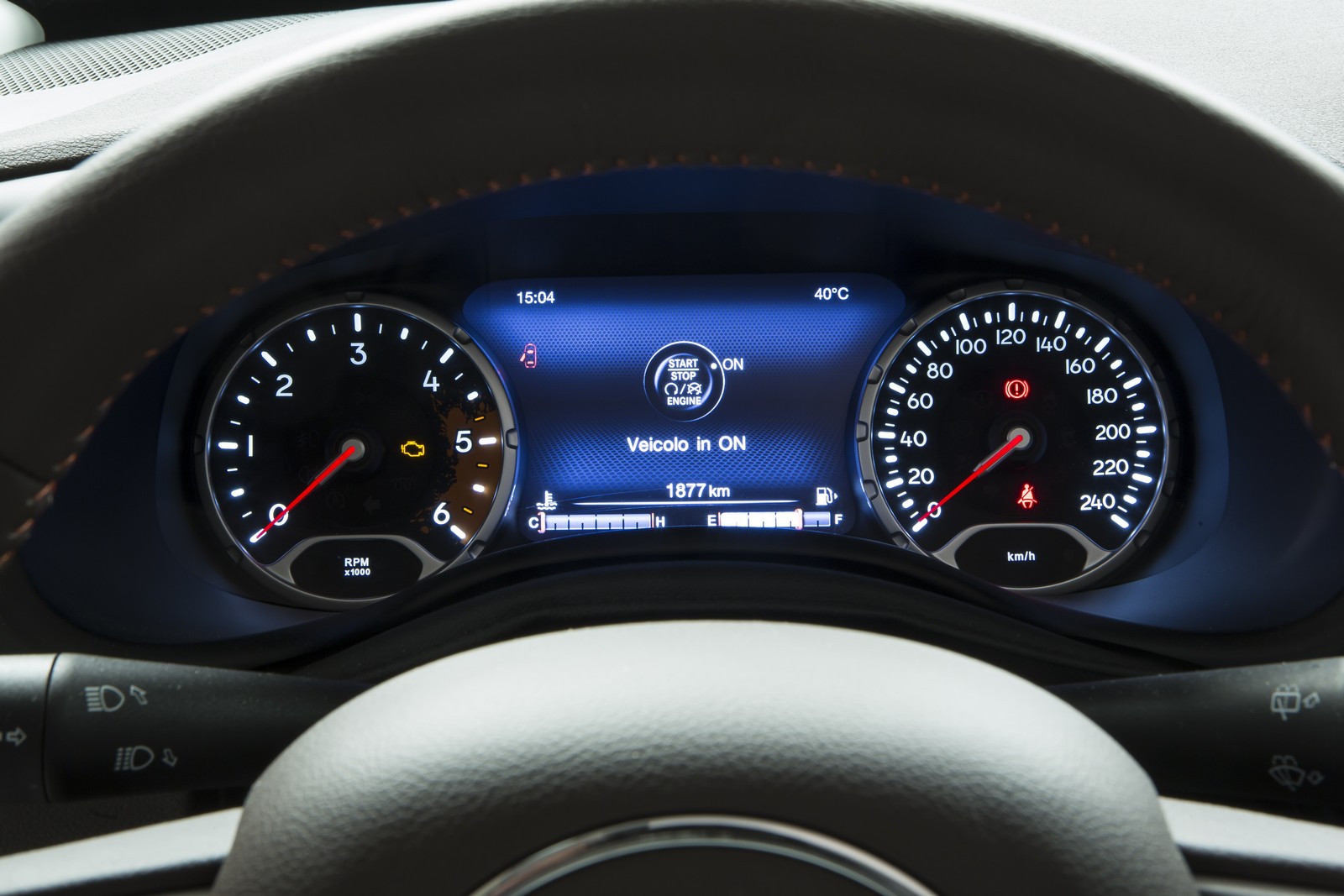 Pe lângă detaliile simpatice – cum ar fi şi pata care marchează „zona roşie a turometrului”, idee apărută după un meci de paintball al designerului de interior – Renegade poate veni şi cu chestii „serioase”, cum ar fi ecranul cu diagonală de 7 inci dintre cadranele instrumentarului de bord (echiparea de bază ar un ecran monocromatic de 3,5 inci) sau ecranul tactil destinat sistemului de infotainment UConnect, plasat pe consola centrală, cu diagonală de 6,5 inci (5,0 inci în versiunea de bază).