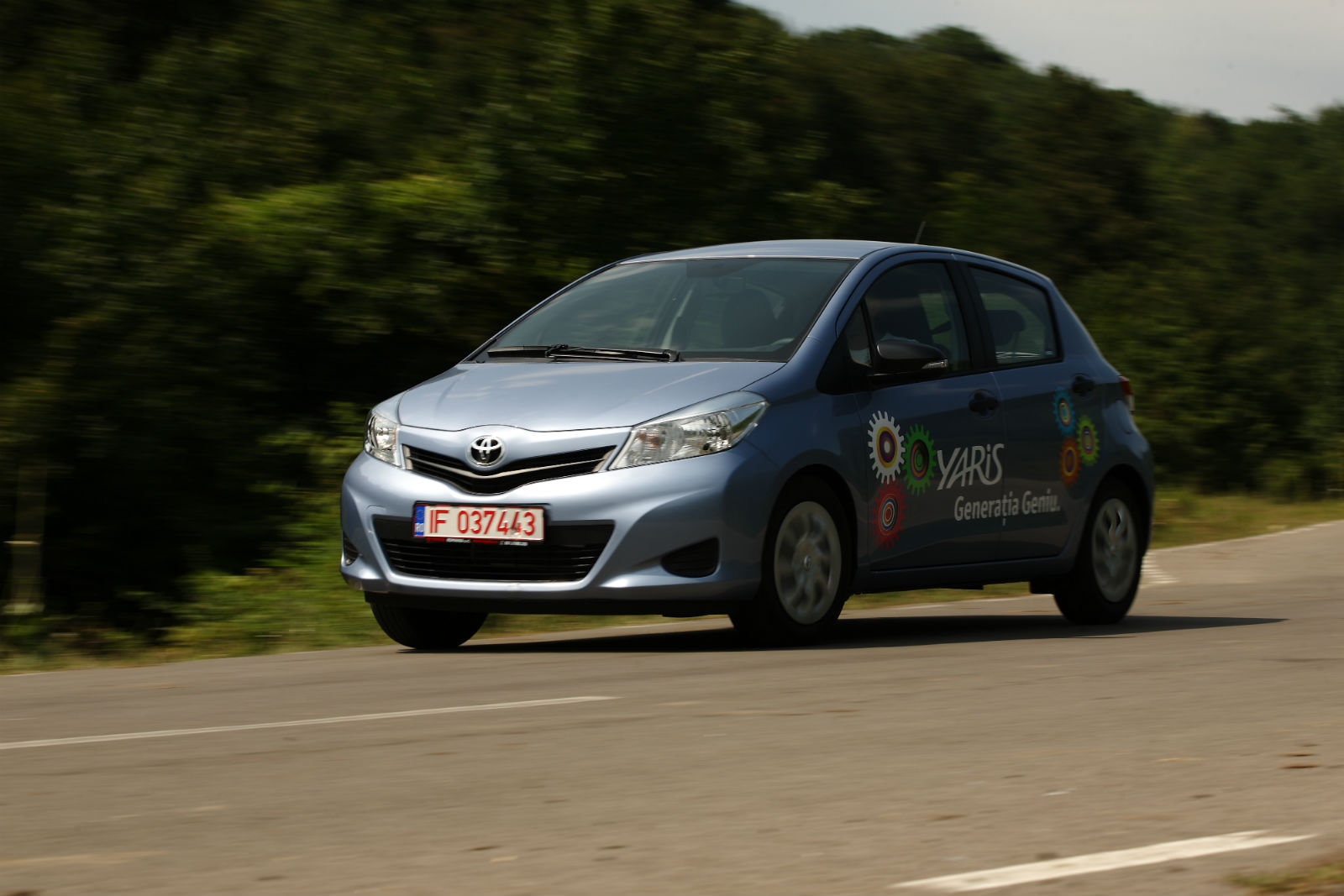 Japonezii au optat să păstreze pe bordul lui Yaris doar cadranul care indică viteza, astfel că turometrul a dispărut. Coroborat cu o timonerie uşor imprecisă a cutiei de viteze, acest lucru i-ar putea pune în dificultate pe cei mai puţin experimentaţi în ale condusului. Altfel, suspensia este setată spre confort, e adevărat, nu la nivelul lui Fiesta sau Polo, în vreme ce direcţia nu comunică mare lucru.