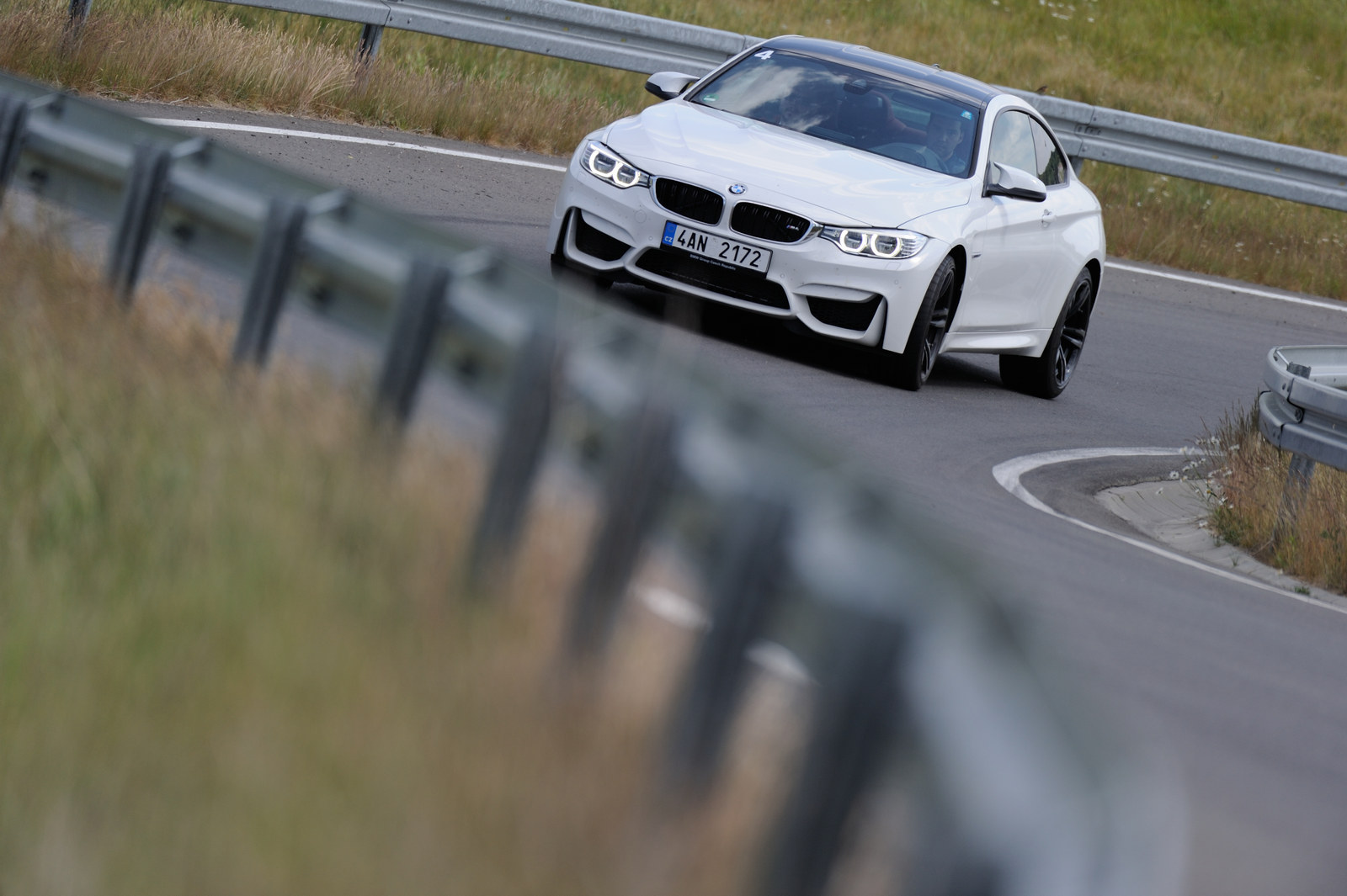 Oricât de mult mi-ar plăcea generaţia anterioară a M3-ului (E92, cu V8 de 4,0 litri), trebuie să recunosc că noile M3 şi M4 sunt mai rapide. Sigur, nu sună la fel de bine ca vechiul V8, oricât de mult ar încerca nemţii să înduplece urechile celor din interior cu ajutorul sistemului audio, dar Doamne cât bine merg! A fost pentru a doua oară când am mers cu un M4 pe circuit şi mi s-a reconfirmat, practic, că maşina asta are nevoie doar de un roll cage ca să fie pregătită pentru curse. 3,0 litri, 431 CP, tracţiune spate şi o transmisie automată perfectă.