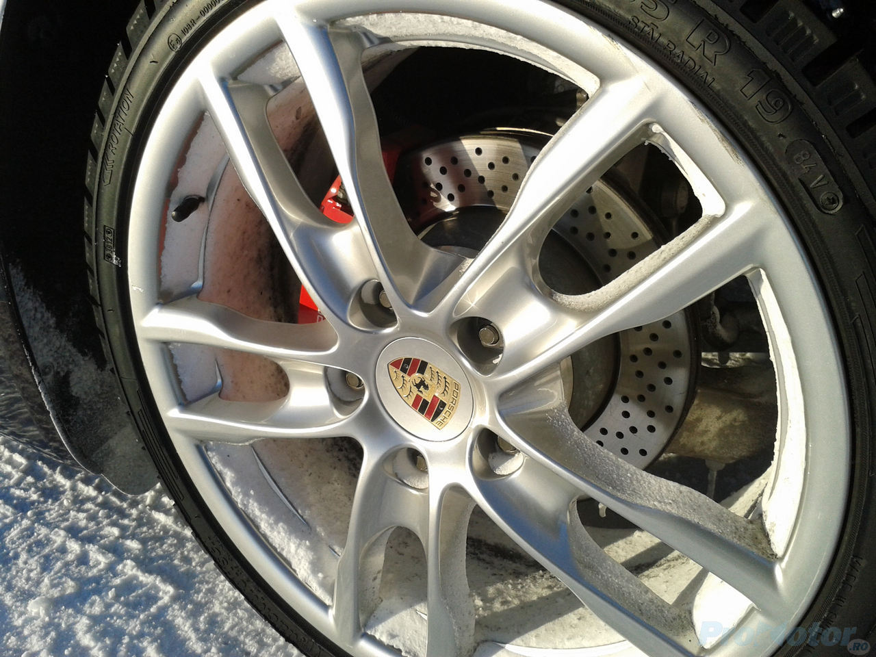 Fără prea multă vorbărie, toate cele patru modele Porsche testate (Carrera S, Boxster S, Carrera 4S şi 911 Turbo) au fost încălţate cu anvelope cu ţinte (4 şi 5 mm). Aderenţa cu aceste anvelope este cu totul din altă lume faţă de cele mai bune anvelope de iarnă la care v-aţi putea gândi. Iar asta spune multe despre cât de importante sunt de fapt anvelopele iarna. Doar gândiţi-vă ce s-ar face o maşină cu 500 de cai aruncaţi pe puntea spate!